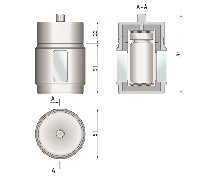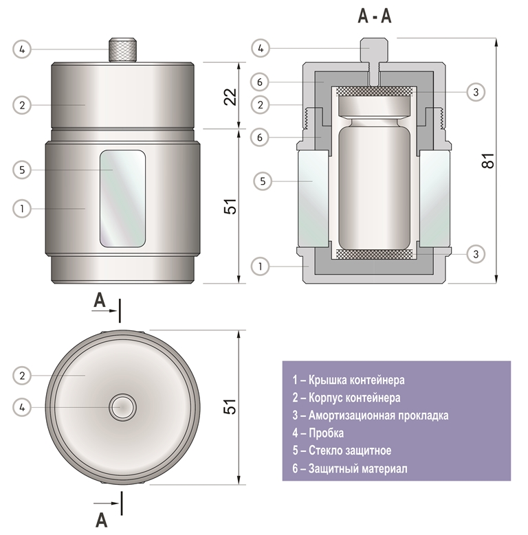 Контейнер защитный TISSA-RP TMRP-03.02.11 предназначен для временного хранения флаконов с радиофармпрепаратом (РФП). В крышке контейнера предусмотрено отверстие для доступа к флакону с РФП.