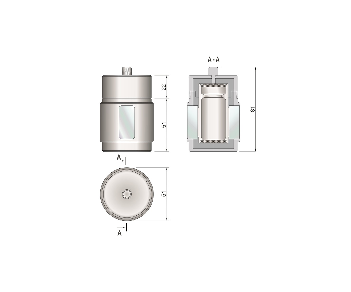 | Габаритные размеры контейнера, мм | Ø51 х 81 (В) |