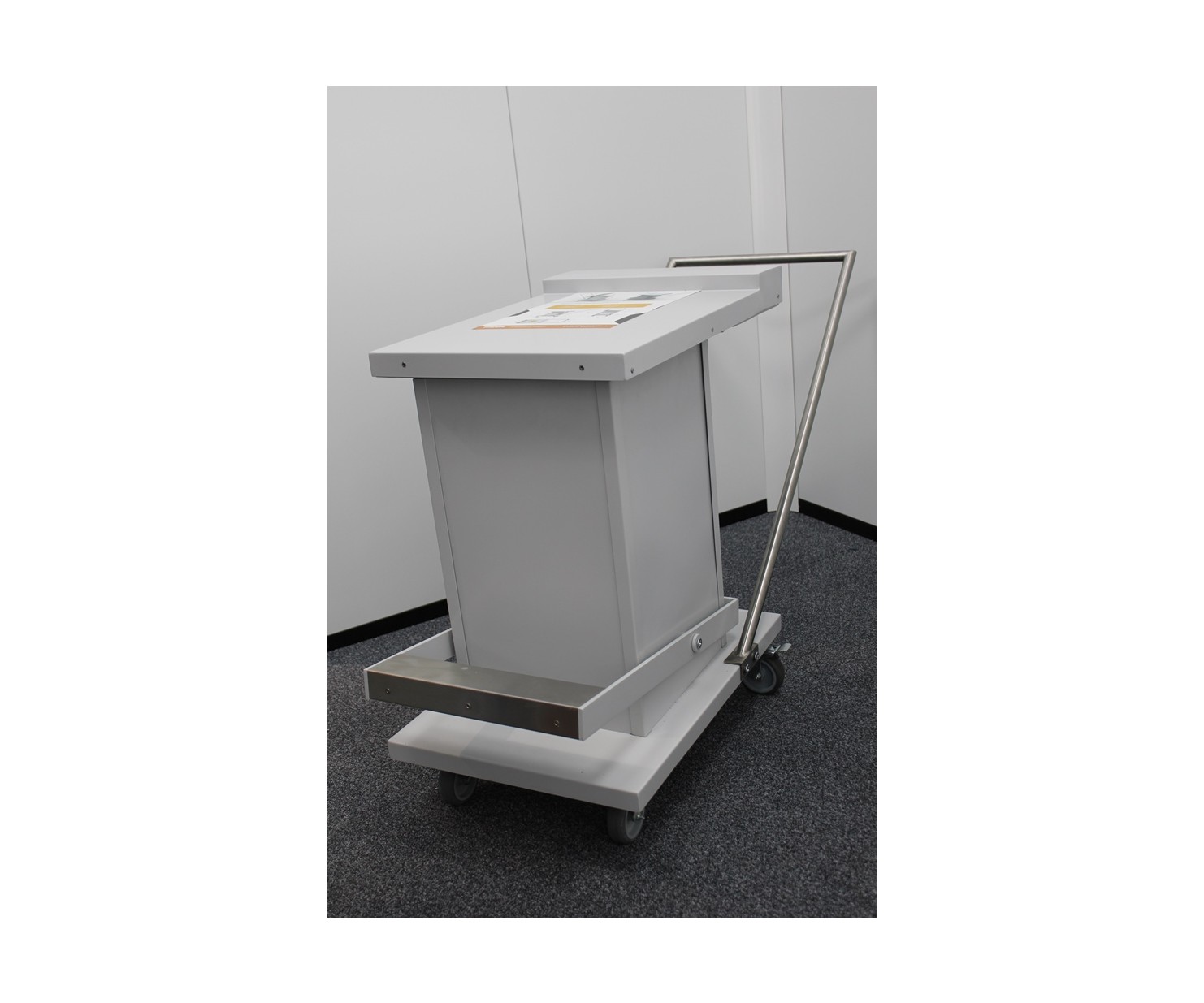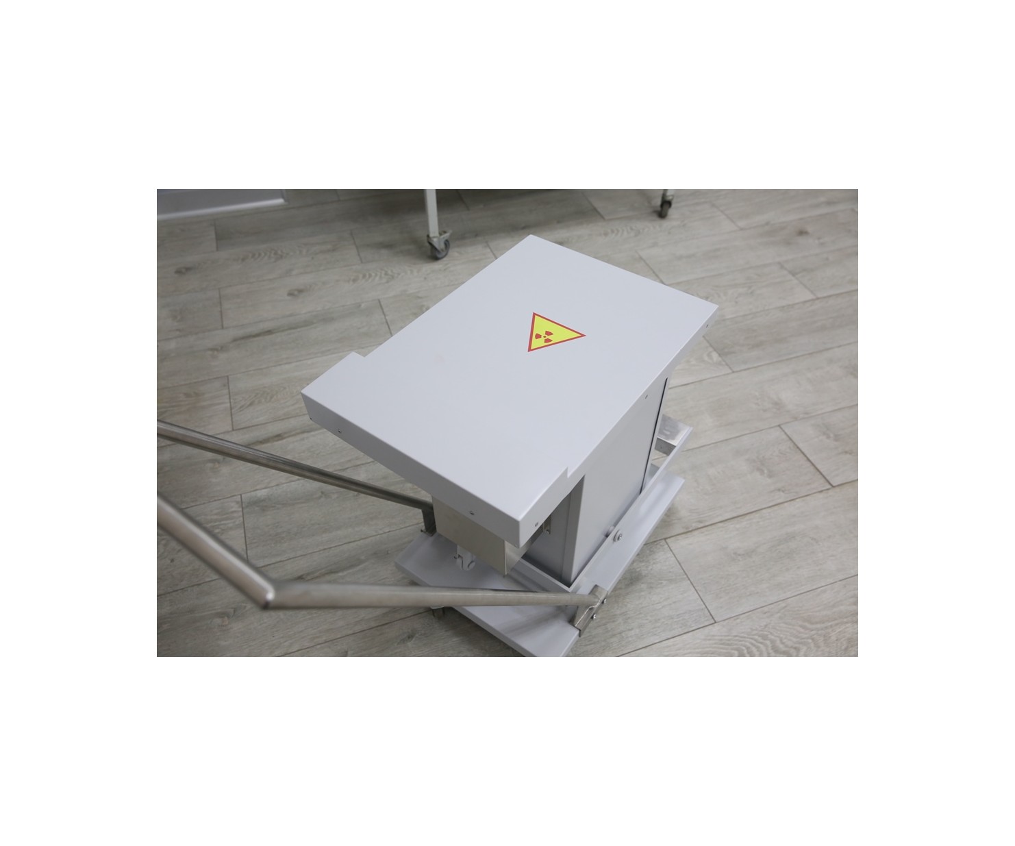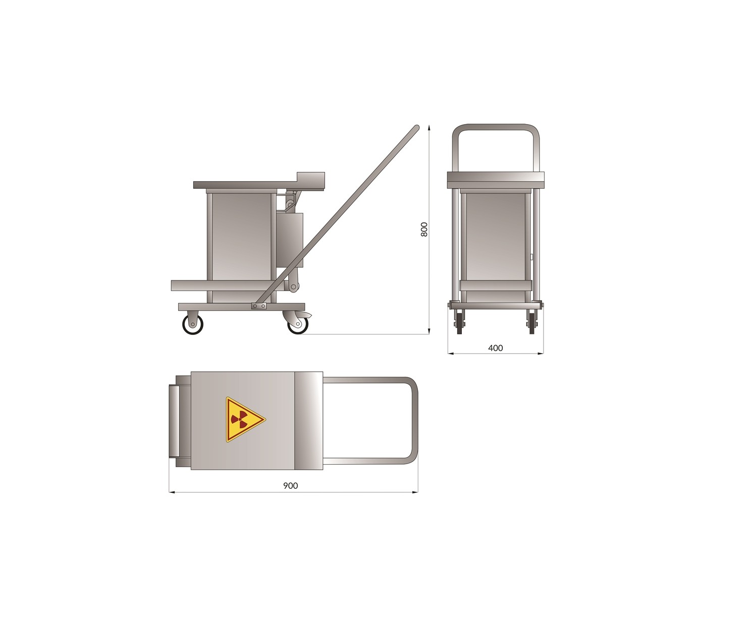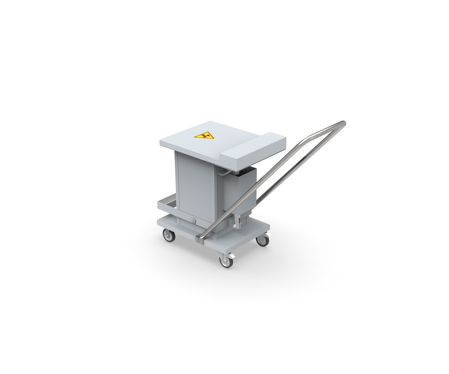 Контейнер представляет собой конструкцию, зафиксированную на платформе. Внутренняя емкость контейнера выполнена из нержавеющей стали AISI 304 и экранирована по периметру защитным материалом (свинец). Для удобства перемещения платформа имеет четыре колесных опоры со стоповыми фиксаторами и металлическую рукоять. Контейнер оборудован откидной крышкой. Для удобства открытия предусмотрен ножной педальный механизм.