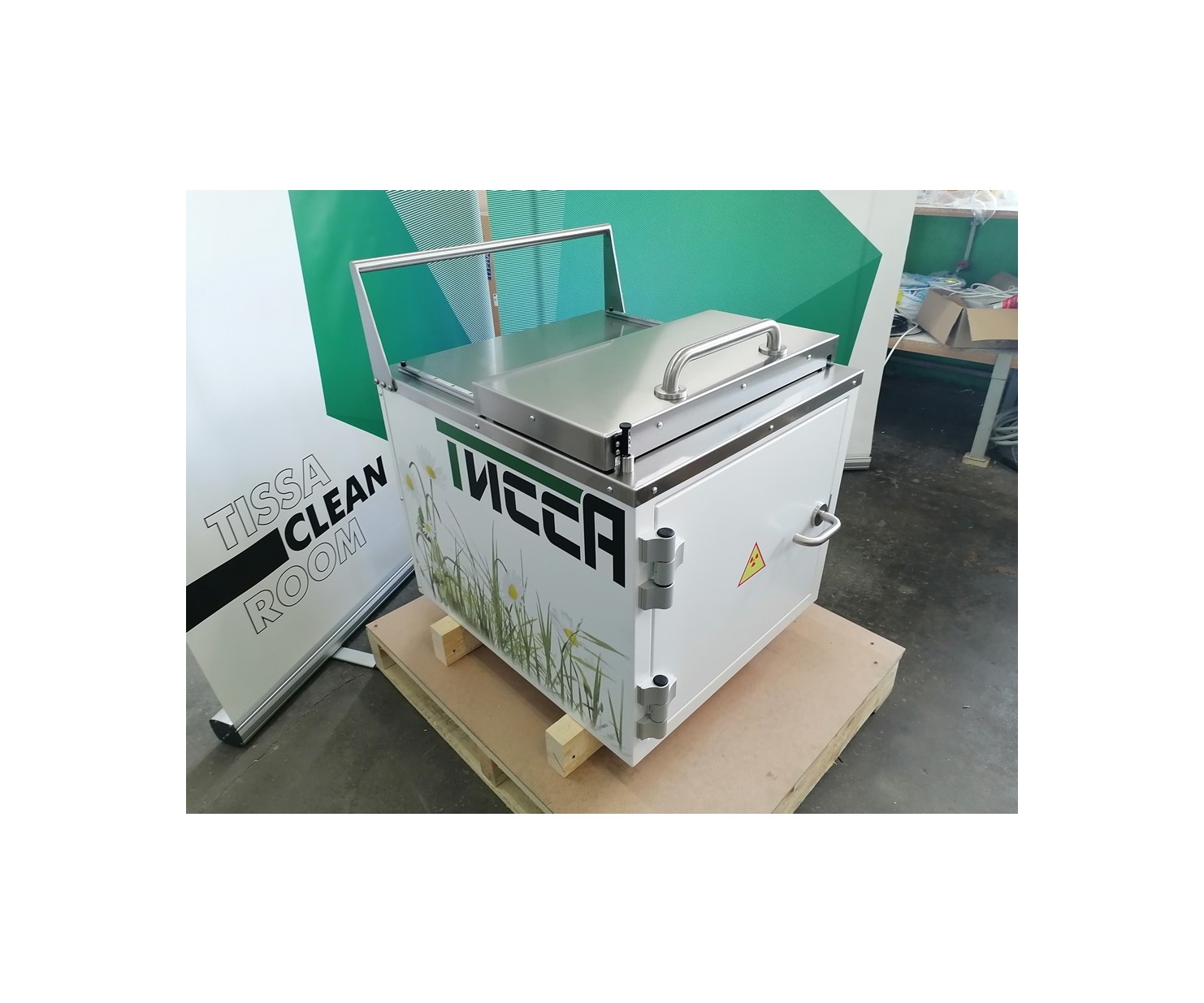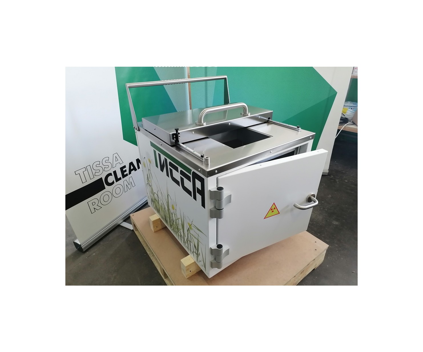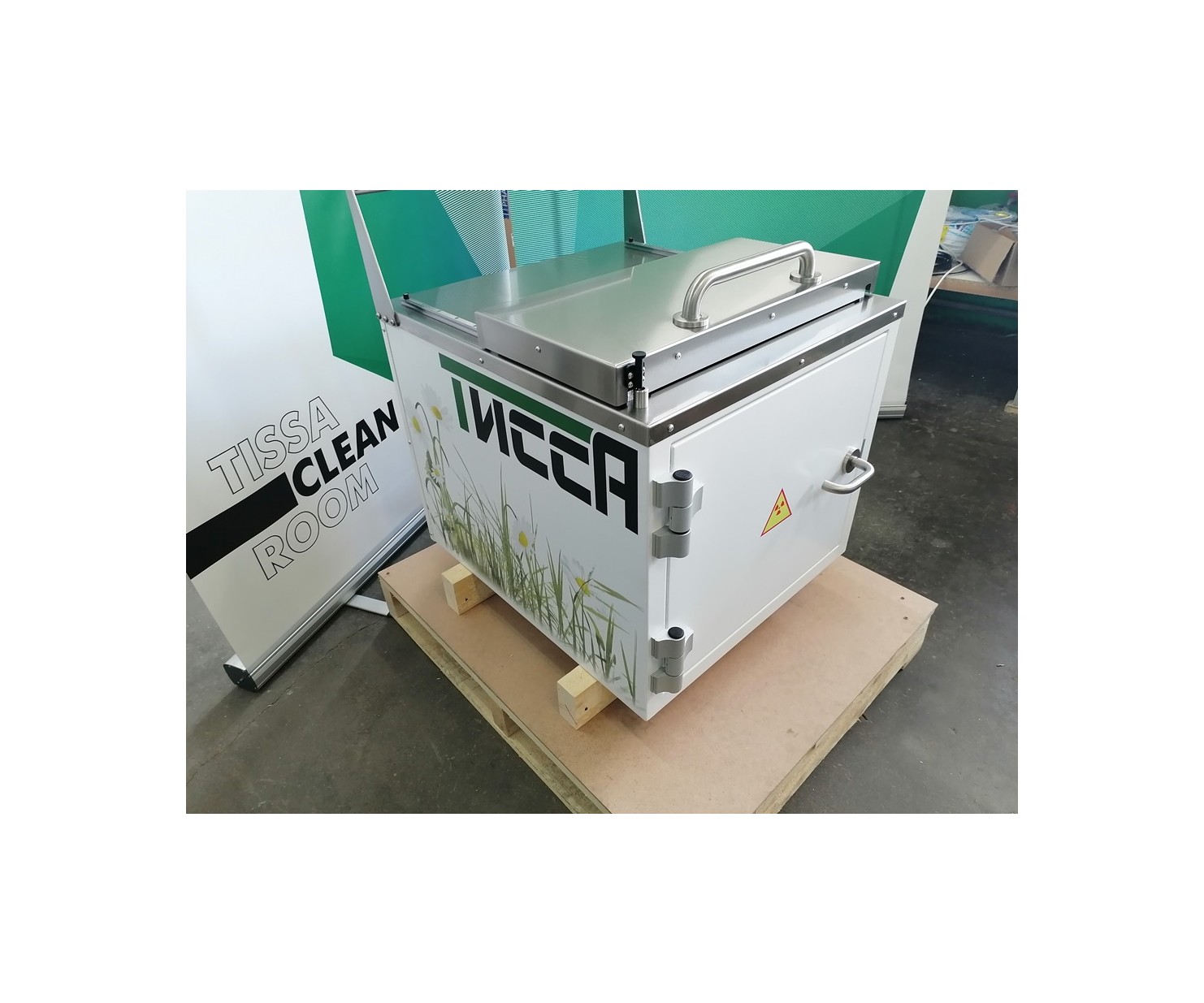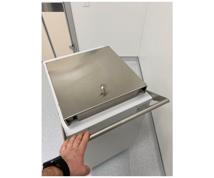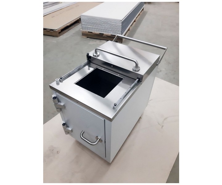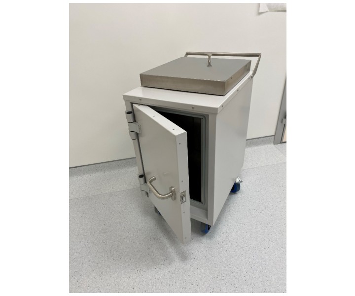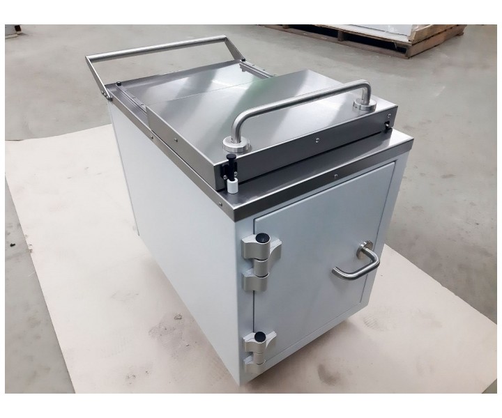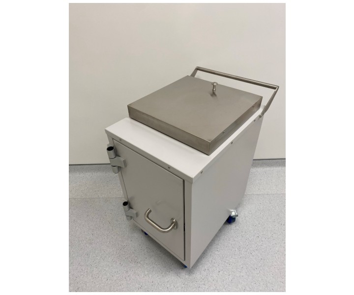Контейнер защитный серии TISSA-RP емкостью 50 литров, предназначен для снижения уровня ионизирующего излучения при сборе и перемещении твердых радиоактивных отходов.