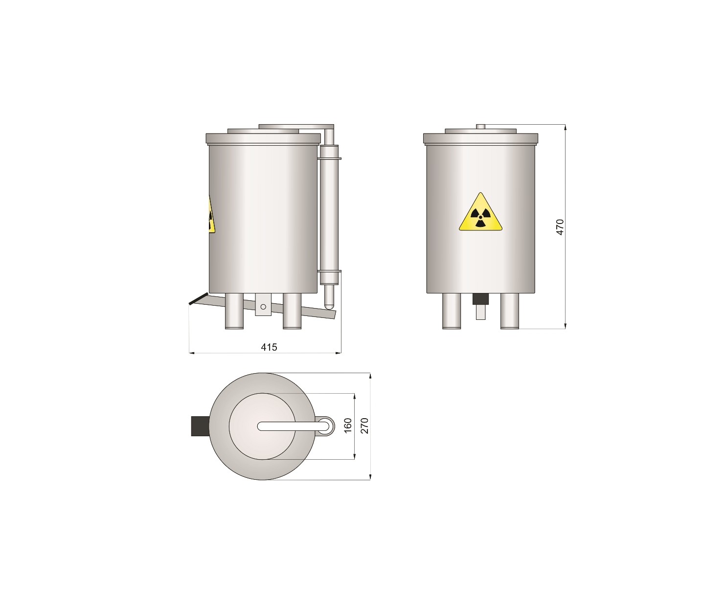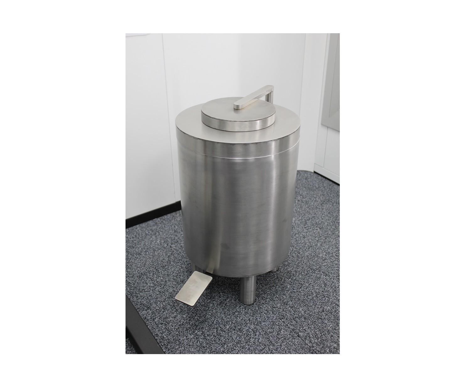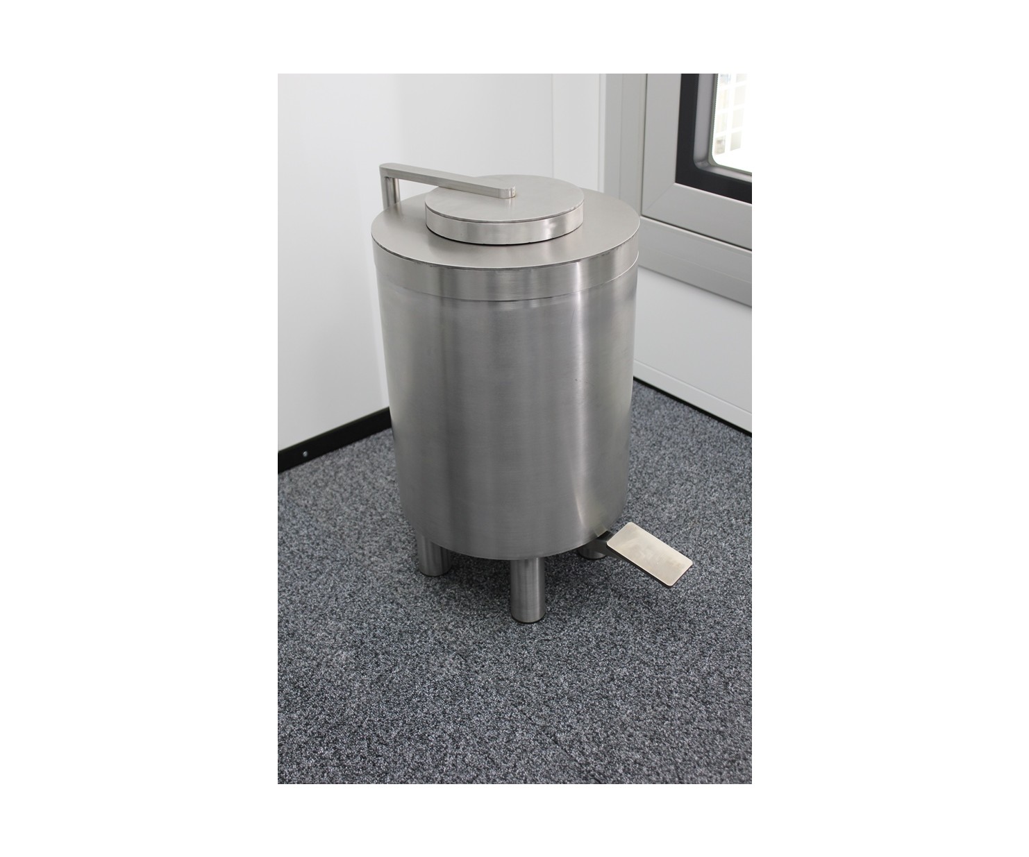 Контейнер защитный TISSA-RP предназначен для сбора твердых радиоактивных отходов и снижения уровня ионизирующего излучения. Контейнер выполнен из нержавеющей стали AISI 304 и экранирован по периметру защитным материалом (свинец). В верхней части контейнера расположен люк с крышкой. Для удобства открытия крышки предусмотрен ножной педальный механизм. При нажатии на педаль крышка люка поднимается и сдвигается в сторону, обеспечивая доступ внутрь контейнера.